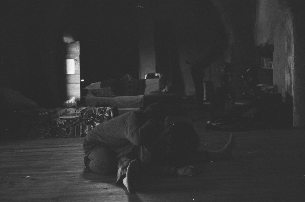 Comme le propose Léa Rivière dans l’odeur des pierres mouillées, travailler le rôle comme «une stabilisation, densification, épaississement ponctuel de certaines relations». Être dans un village pour faire de la politique des endroits que l’on habite ensemble, pour observer se «remplacer individuel, identitaire, par relationnel, communautaire». Avoir la possibilité d’enfiler plusieurs costumes, de mettre plusieurs casquettes et changer de chemise, de porter des habits, porter des ami.e.s, porter des noms et des pronoms, de porter du make-up pour cacher et révéler d’autres parts de ce qui nous meut. Emprunter des danses et des visages. Se permettre de rencontrer, d’aller avec la rivière, les chats, les oiseaux, les fourmis, les brins d’herbe, les lattes du plancher, composter, peler des légumes lentement, pleurer touts ses oignons, danser la nuits, la veiller, construire un feu, tomber dans des trous, des failles, lécher la géologie, s’offrir des tailles de saison, sédimenter, négocier la vie et la mort, leurs formes, sentir-avec, conspirer, s’accorder, trembler, vaciller, secouer, diverger en relation, être différent.e avec, pratiquer la solitude collectivement, envisager, et encore deuiller et assister les naissances.