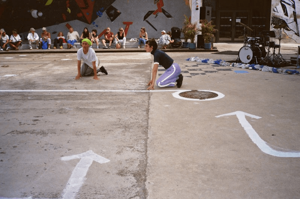 A sport of choreographic improvisation. It’s an invitation to take part in the warm-up and creation of a new sport, a summons through physical to make the show a place of the experiential. We are collectively creating a sport that is absurd, funny, free from authoritarian refereeing domination and beyond regulatory physical norms. Our practice creates chaos and puts the competitive dimension of sport to shame.